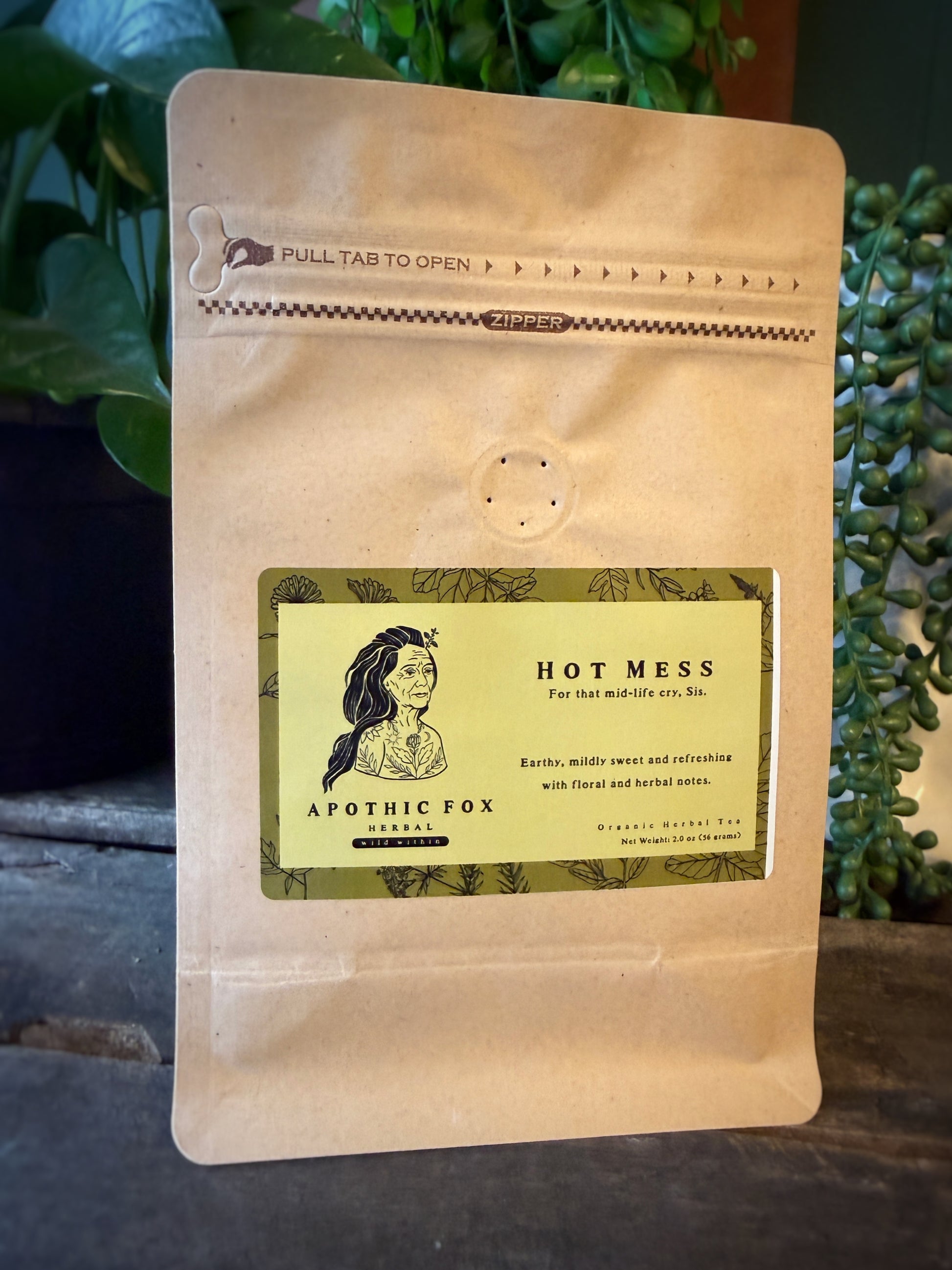 Earthy, mildly sweet and refreshing with floral and herbal notes. This isn't and undoing, it;s a becoming. This blend supports hormone balance during midlife shifts. Drink to help bring down your internal temperature, adjust your crown, or balance the swing.