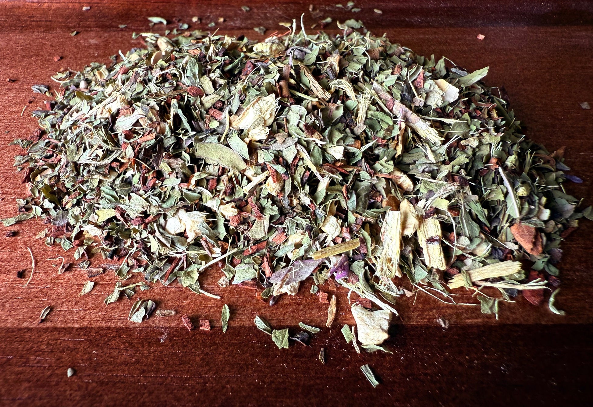 Ingredients: Honeybush, Peppermint Leaf, Ginger Root, Licorice Root, Cinnamon